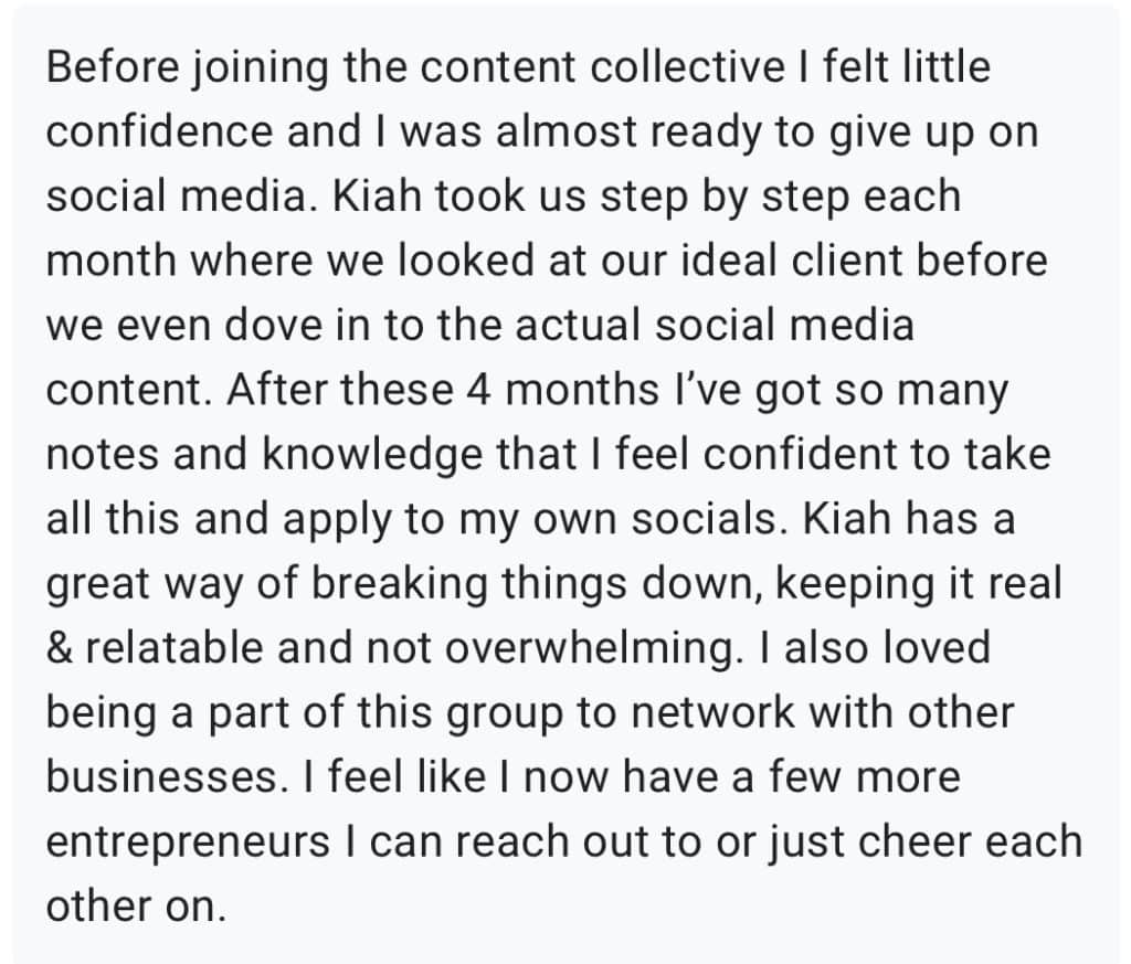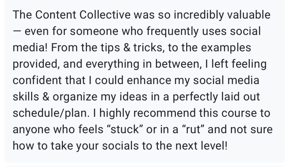 Women who have been exactly where you are right now are now showing up with confidence and a content strategy that's actually growing their businesses. Don't just take my word for it.Here's what happens inside The Content Collective: Almost gave up, now confident